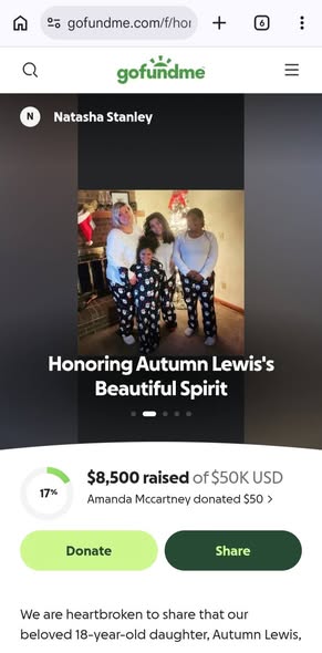 As of Thursday, the fundraiser had already raised around $8,500. Each donation carries a message of sympathy, a reminder that Autumn’s life, though short, touched many. The outpouring reflects not just sorrow, but also the deep impact she had on her community.