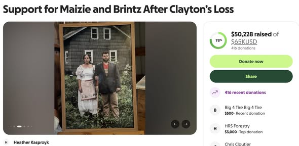 In the wake of Clayton’s death, friends organized a GoFundMe titled “Support for Maizie and Brintz After Clayton’s Loss.” The fundraiser aimed to help his wife, Maizie, and their toddler son, Brintz, begin to cope with both emotional and financial burdens. Within a short time, more than 400 people had donated, and the total raised passed $50,000. Messages left by supporters reflected deep sympathy and shock at Clayton’s passing.