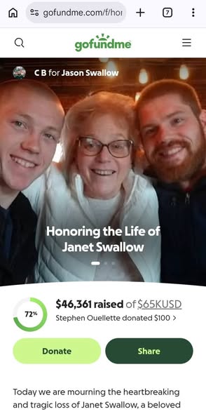 Supporters say the effort is about more than money. It is about standing beside two grieving children and remembering a woman whose life was centered on caring for others. For many in Danvers, the loss of Janet Swallow has left a deep silence in a place that once felt safe.