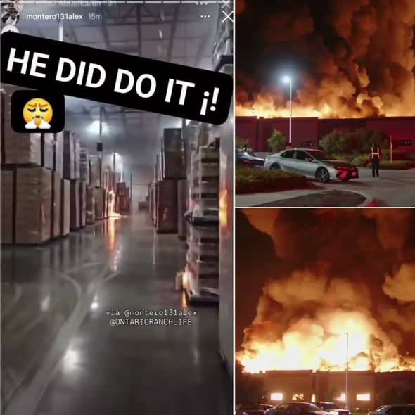 In Ontario, California, just after midnight on Tuesday, a huge fire tore through a 1.2‑million‑square‑foot Kimberly‑Clark distribution warehouse filled with paper products. Around 12:30 a.m., fire crews were called to the blaze near South Hellman Avenue and Merrill Avenue as thick smoke and towering flames lit up the sky. Firefighters quickly realized this was no ordinary accident when the flames spread with startling speed and intensity.