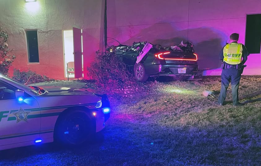 It happened around 12:29 a.m. on April 17, 2026. Deputies and fire rescue crews rushed to the area near B. Moore Road after receiving reports of a serious collision. When they arrived, the scene was already grim. A heavily damaged 2020 Hyundai Sonata had torn through a chain-link fence and slammed into the outer wall of the First Apostolic Pentecostal Church.
