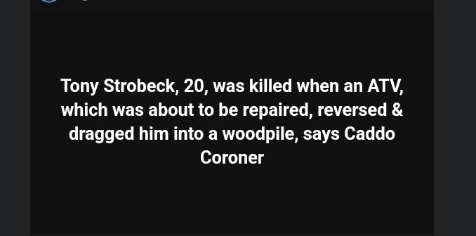 The morning light had barely settled over Caddo Parish when a routine start to the day turned tragic. Twenty-year-old Tony Strobeck lost his life Friday morning in what deputies are calling a freak accident involving a utility task vehicle, or UTV.