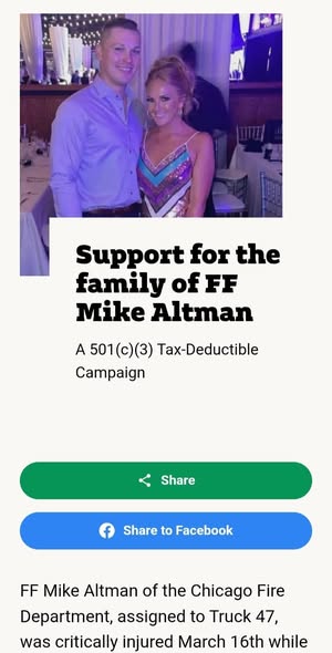 Altman had served with the Chicago Fire Department for nearly two years and was assigned to Truck 47 in the Edgewater neighborhood. He was also a fourth‑generation firefighter in his family, continuing a legacy of service in the city. Colleagues described him as someone who always put others first, moving quickly and confidently in dangerous conditions to help those in need.
