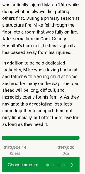 The Yard Foundation, a nonprofit that supports firefighters and their families, has started efforts to raise funds to help cover immediate needs such as funeral and living expenses. The outpouring of support has been significant, with donations reaching well into the tens of thousands within the first day.